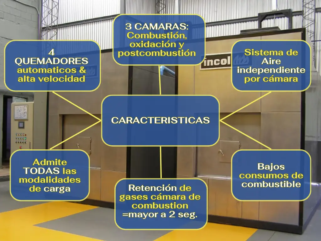 - Cámara de post combustión con retención de gases mayor a 2 segundos.